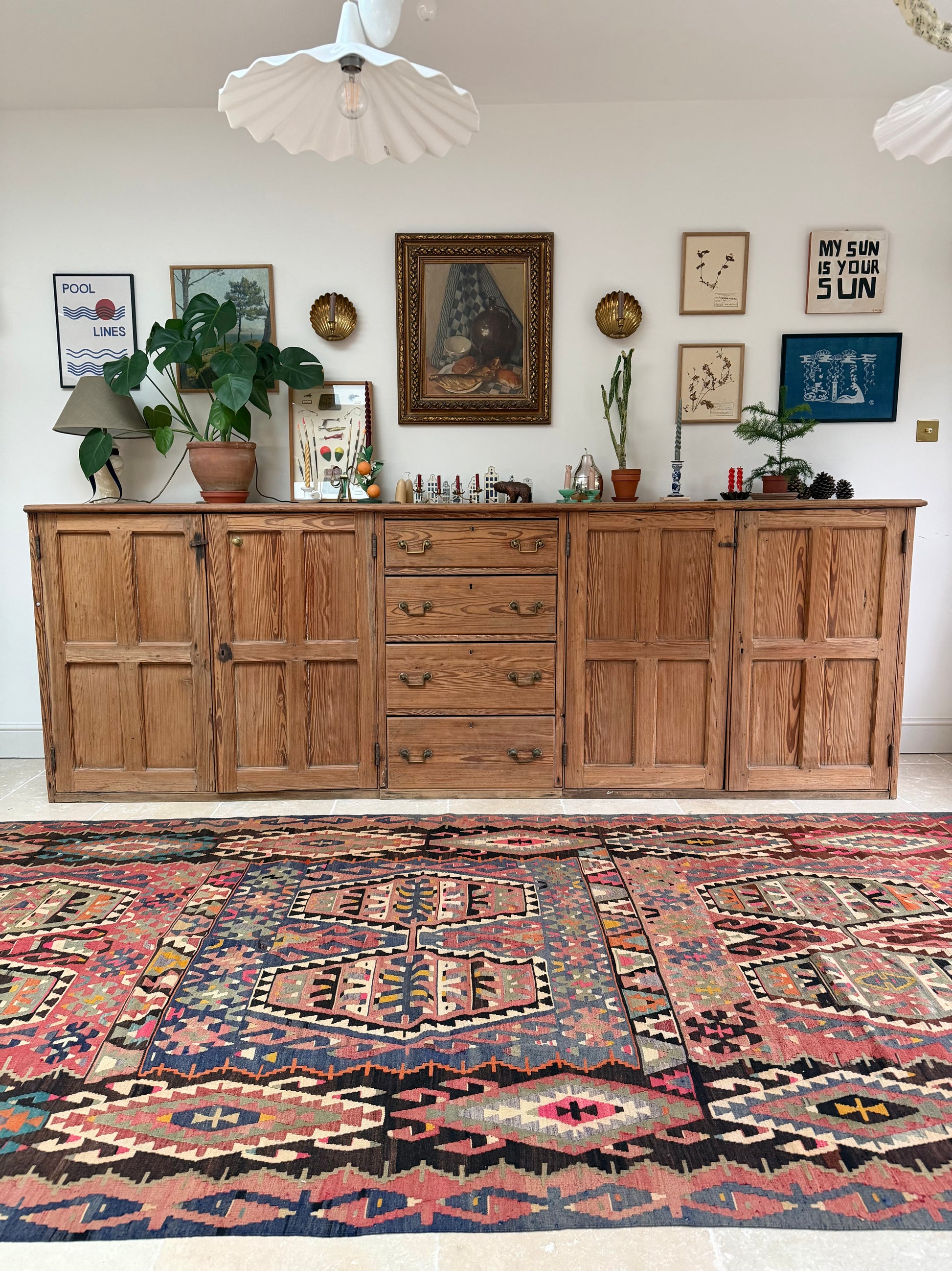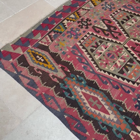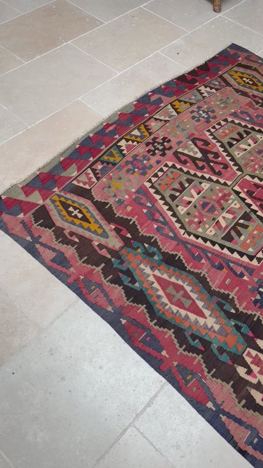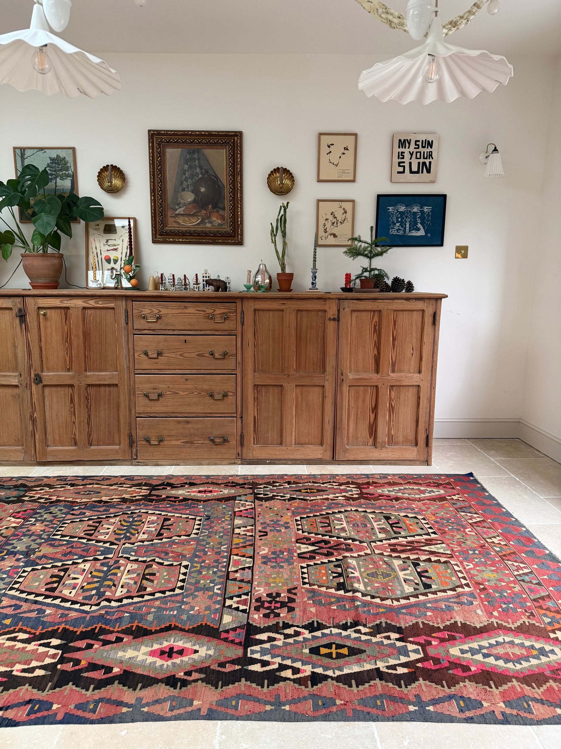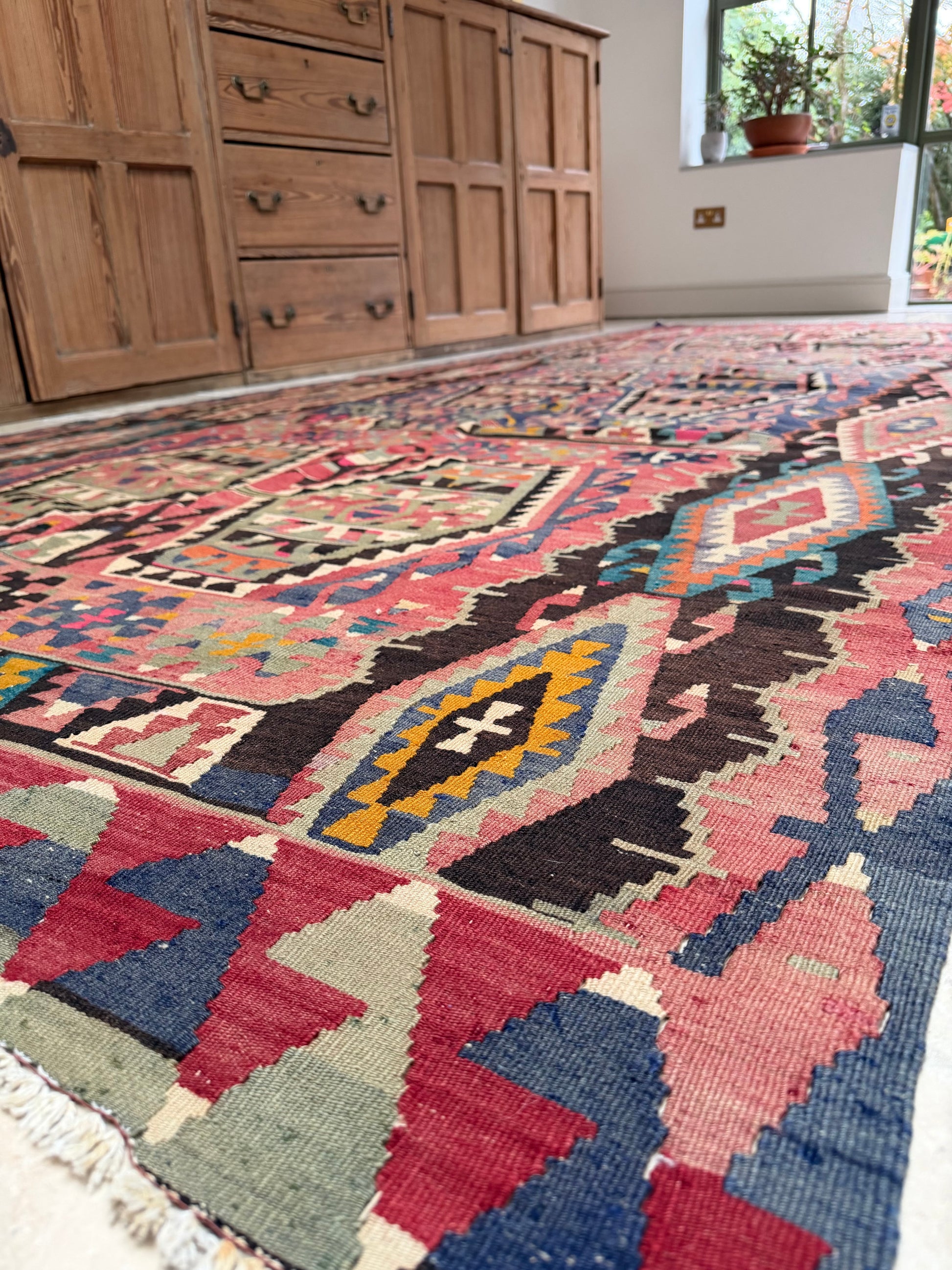 This striking mid-century hand woven Anatolian Kilim is a true feast of pattern and colour.