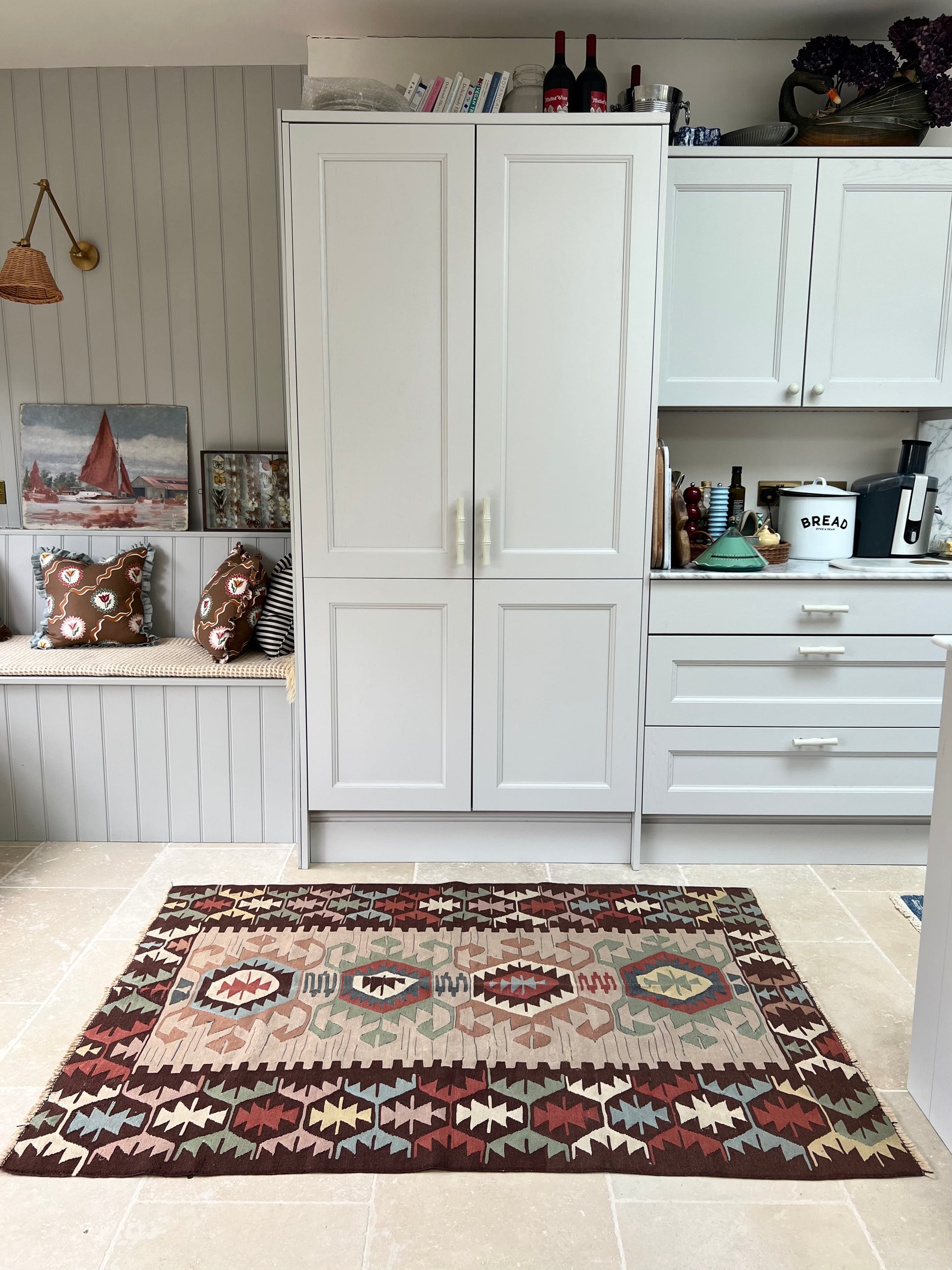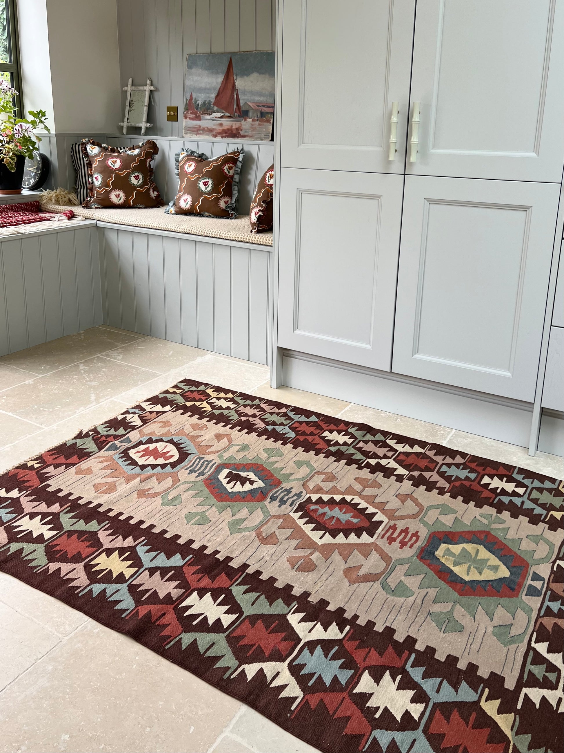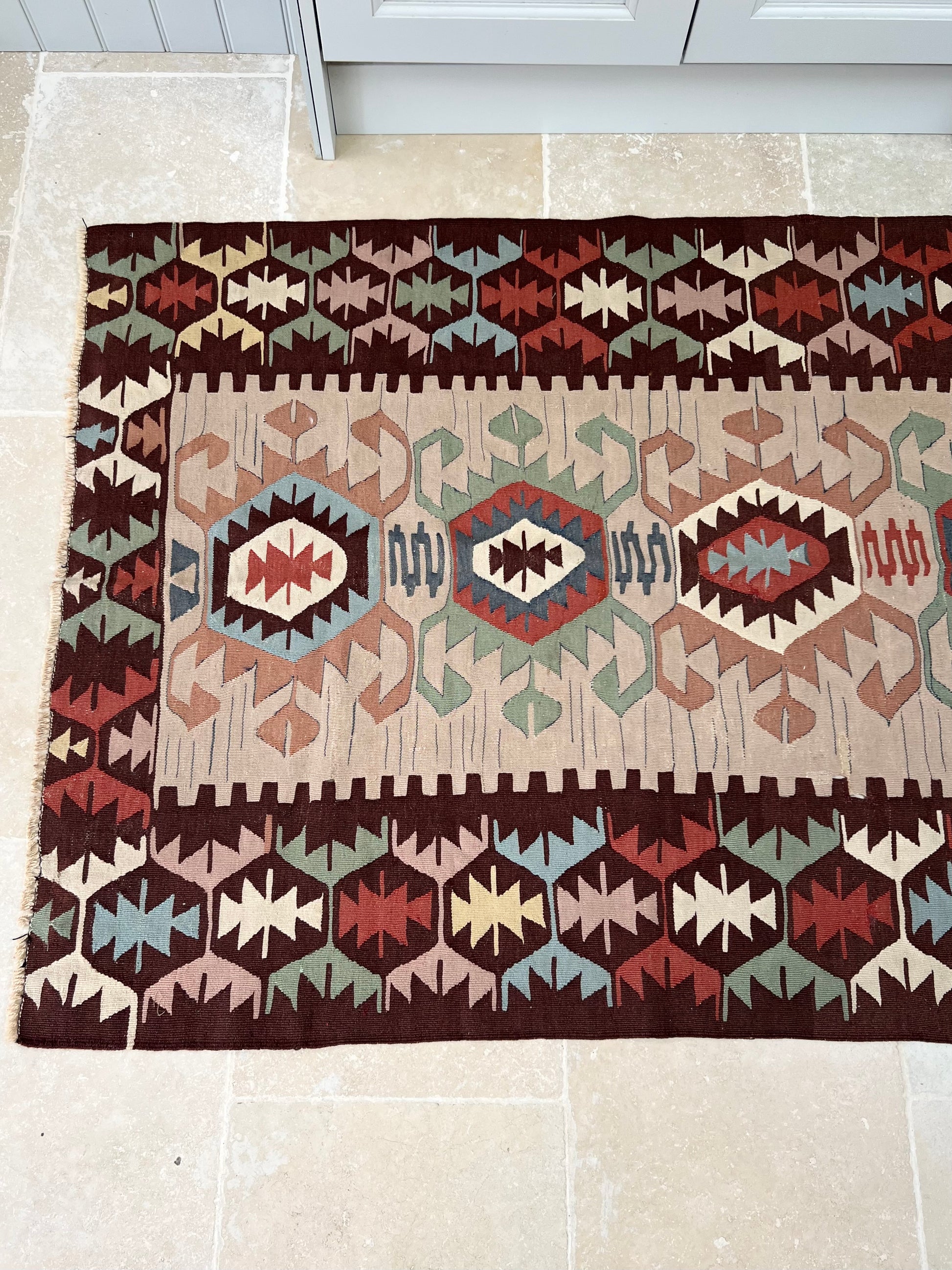 A punchy kilim bursting with colour and energy.