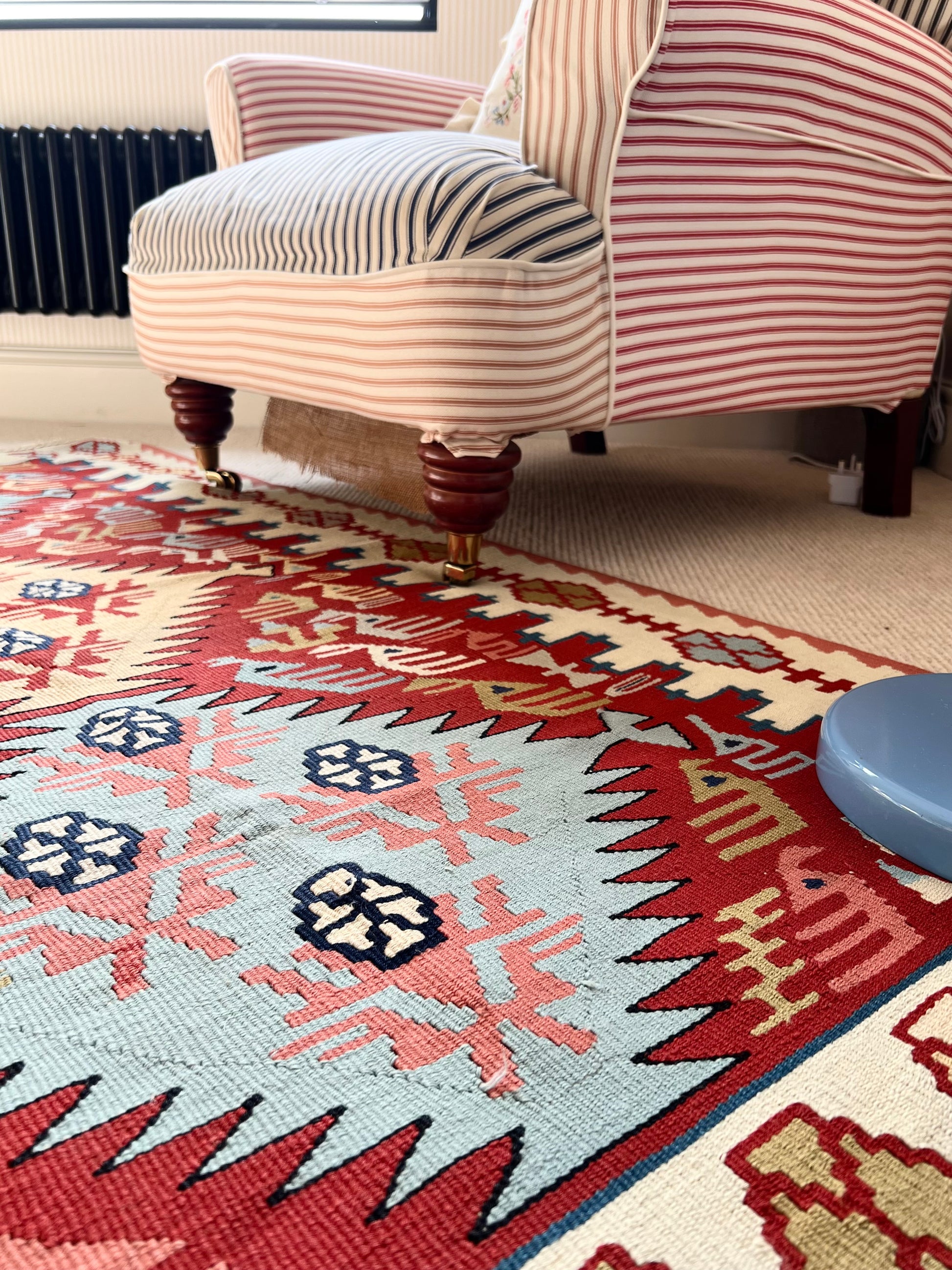 All rugs are professionally cleaned and sent in their best condition. Due to the nature of vintage, antique and handmade rugs, some imperfections, signs of wear, and irregularities in weave and size are to be expected. These are part of their character and why we love them.