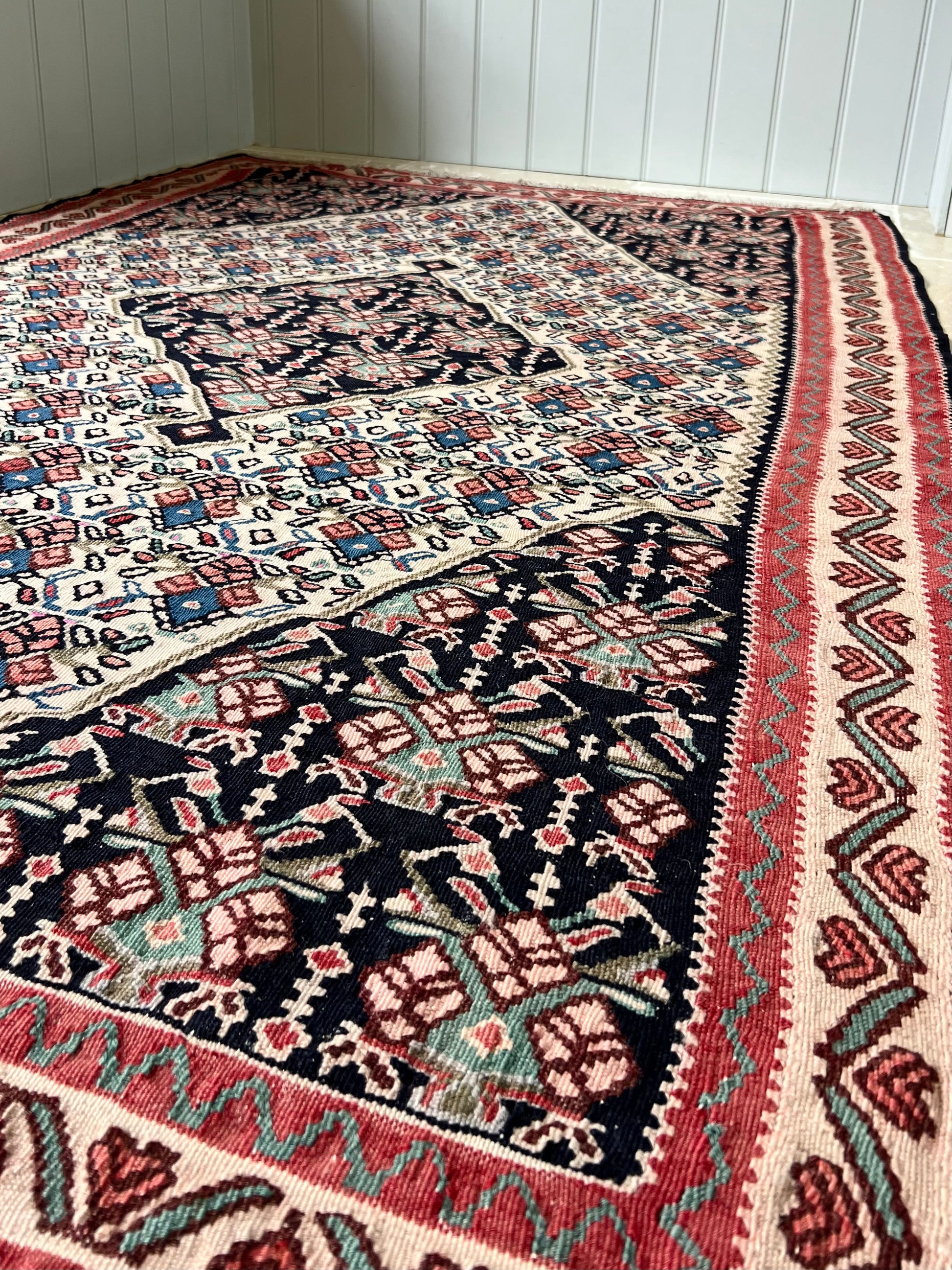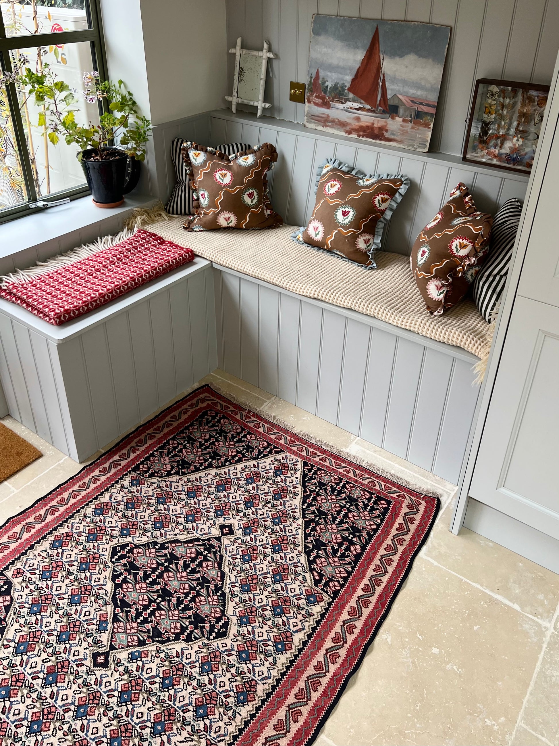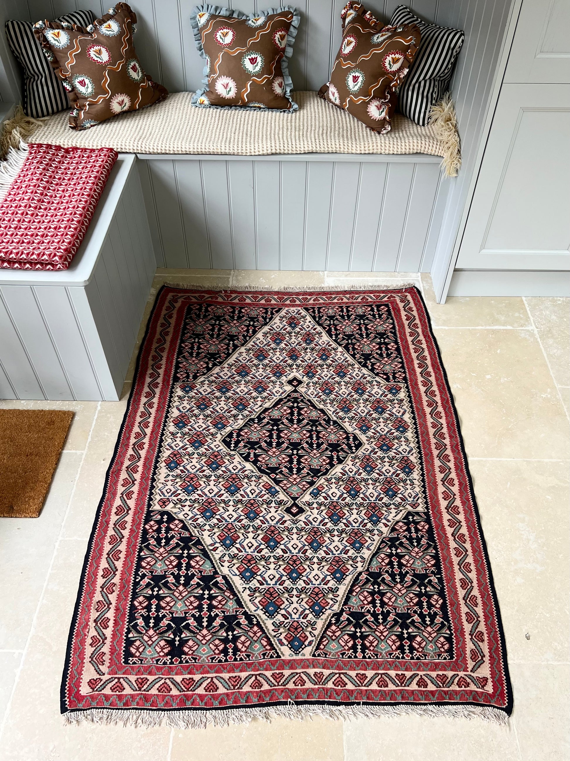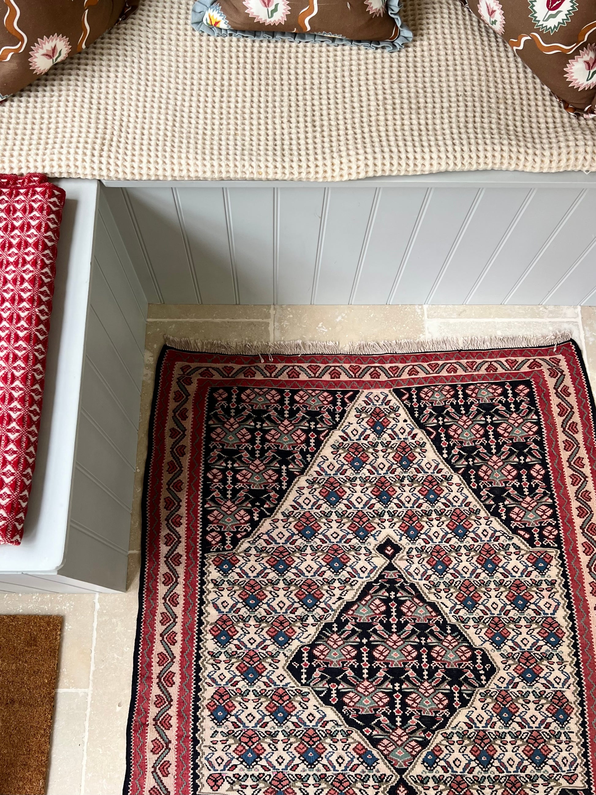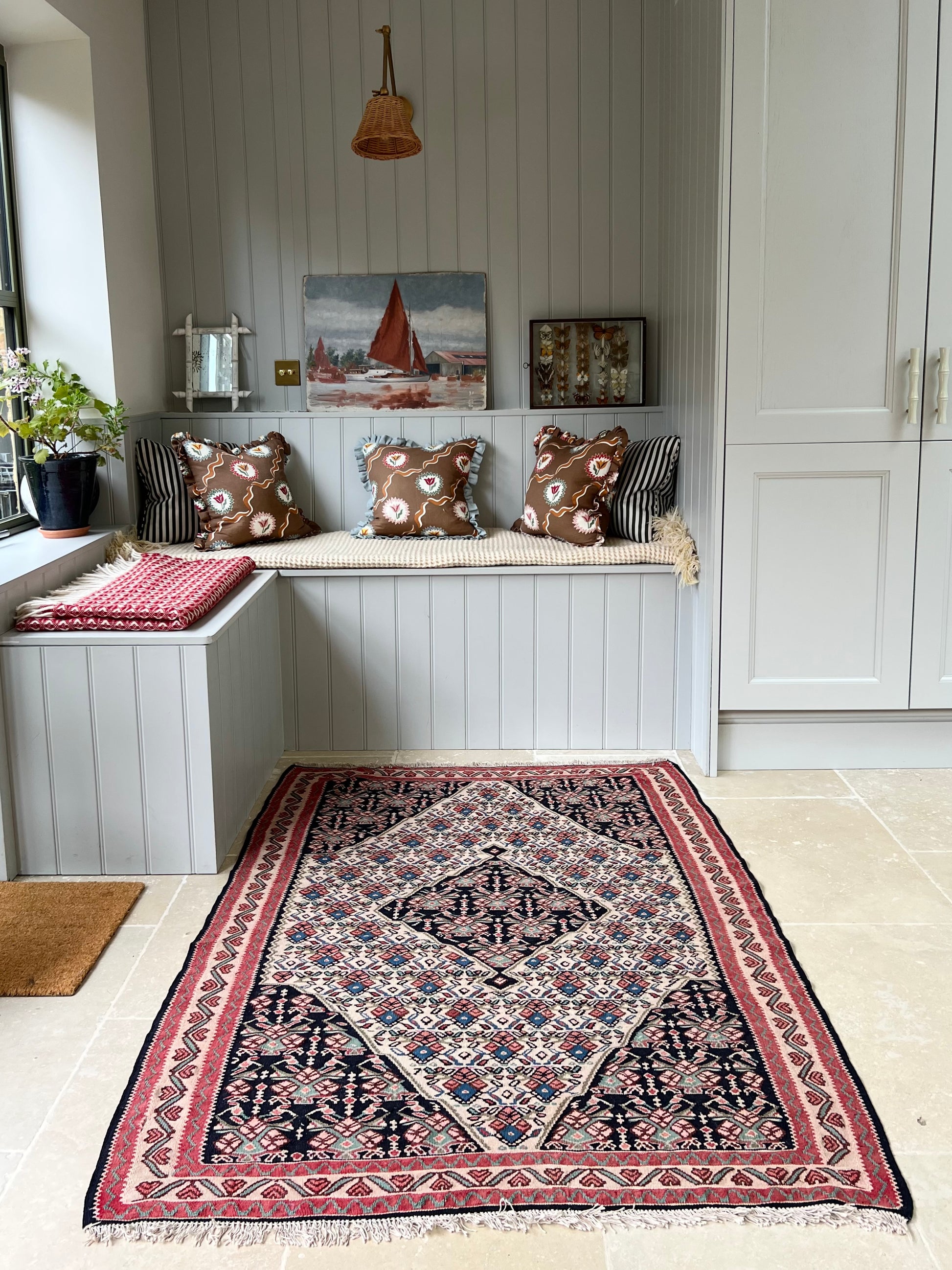 All rugs are professionally cleaned and sent in their best condition. Due to the nature of vintage, antique and handmade rugs, some imperfections, signs of wear, and irregularities in weave and size are to be expected. These are part of their character and why we love them.