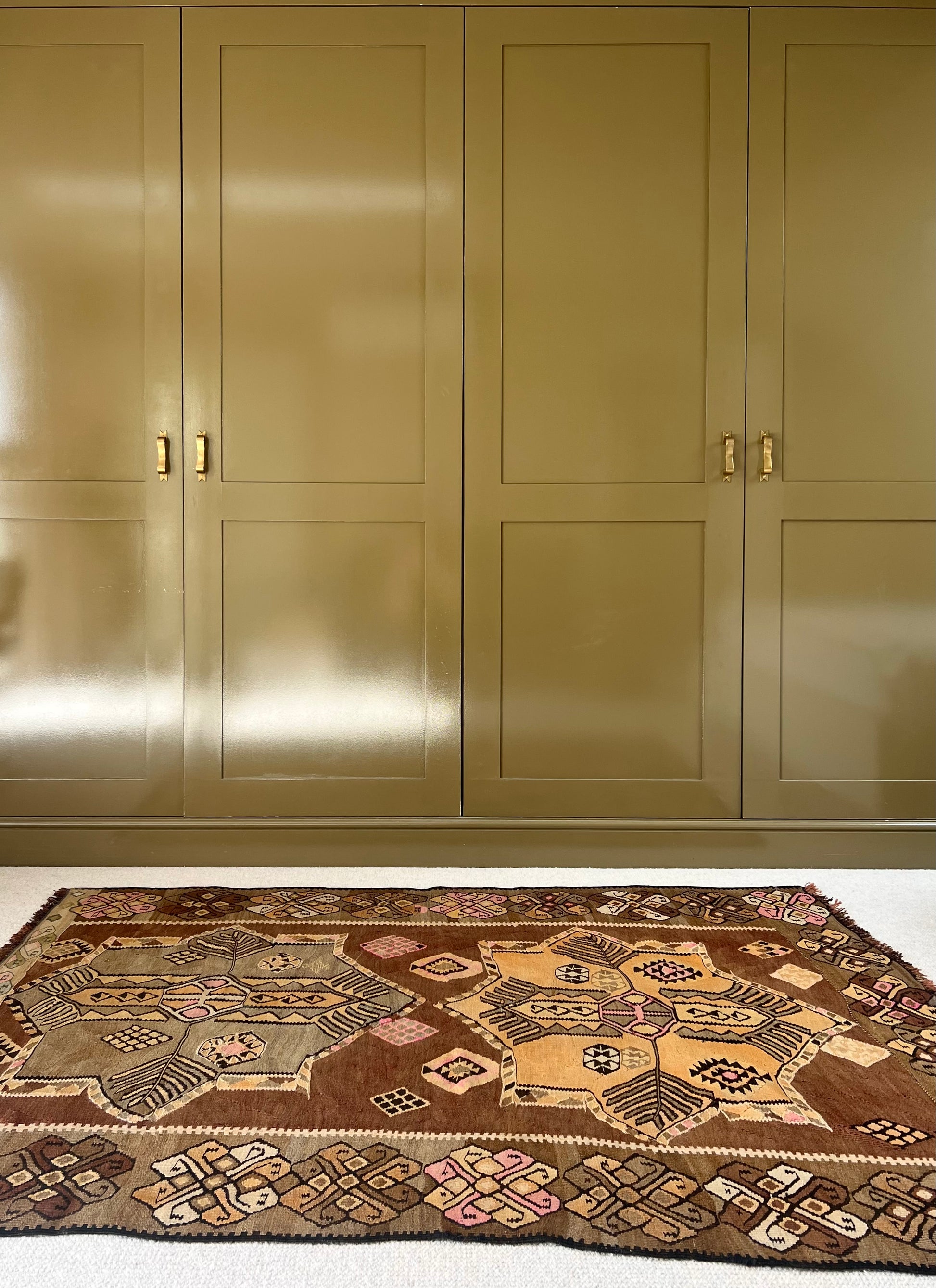 Woven in the Anatolian tradition, it combines tribal motifs with an unusual colour story, giving it both warmth and sophistication—a unique piece that’s full of character and charm.