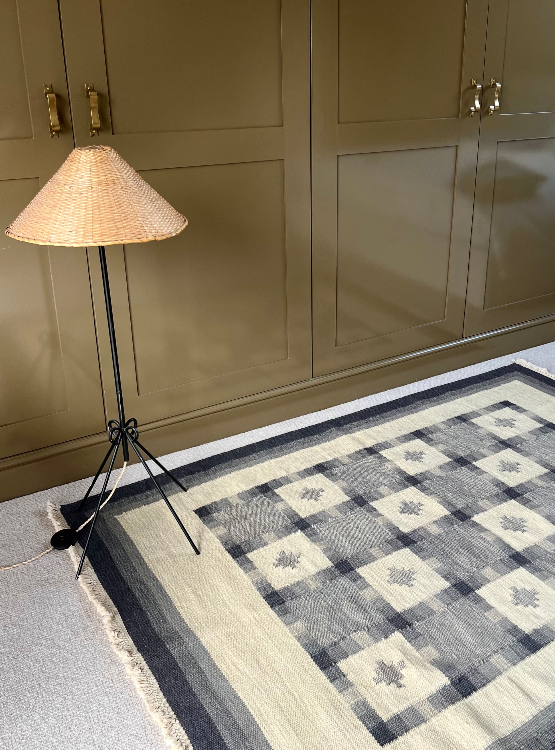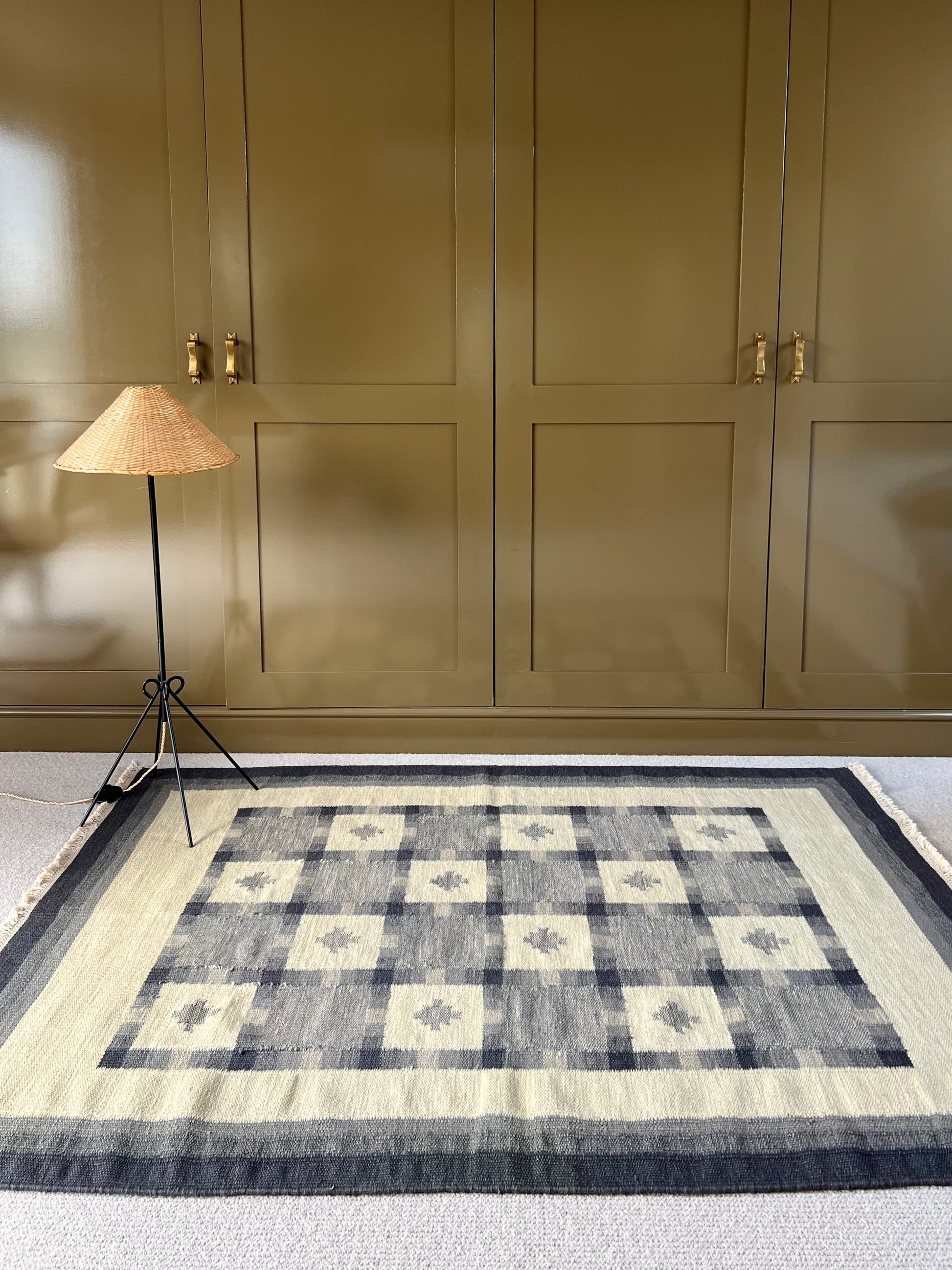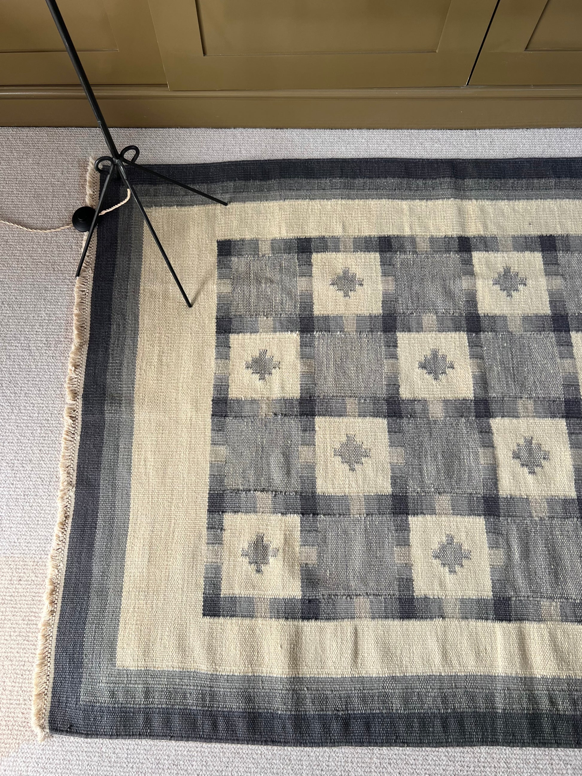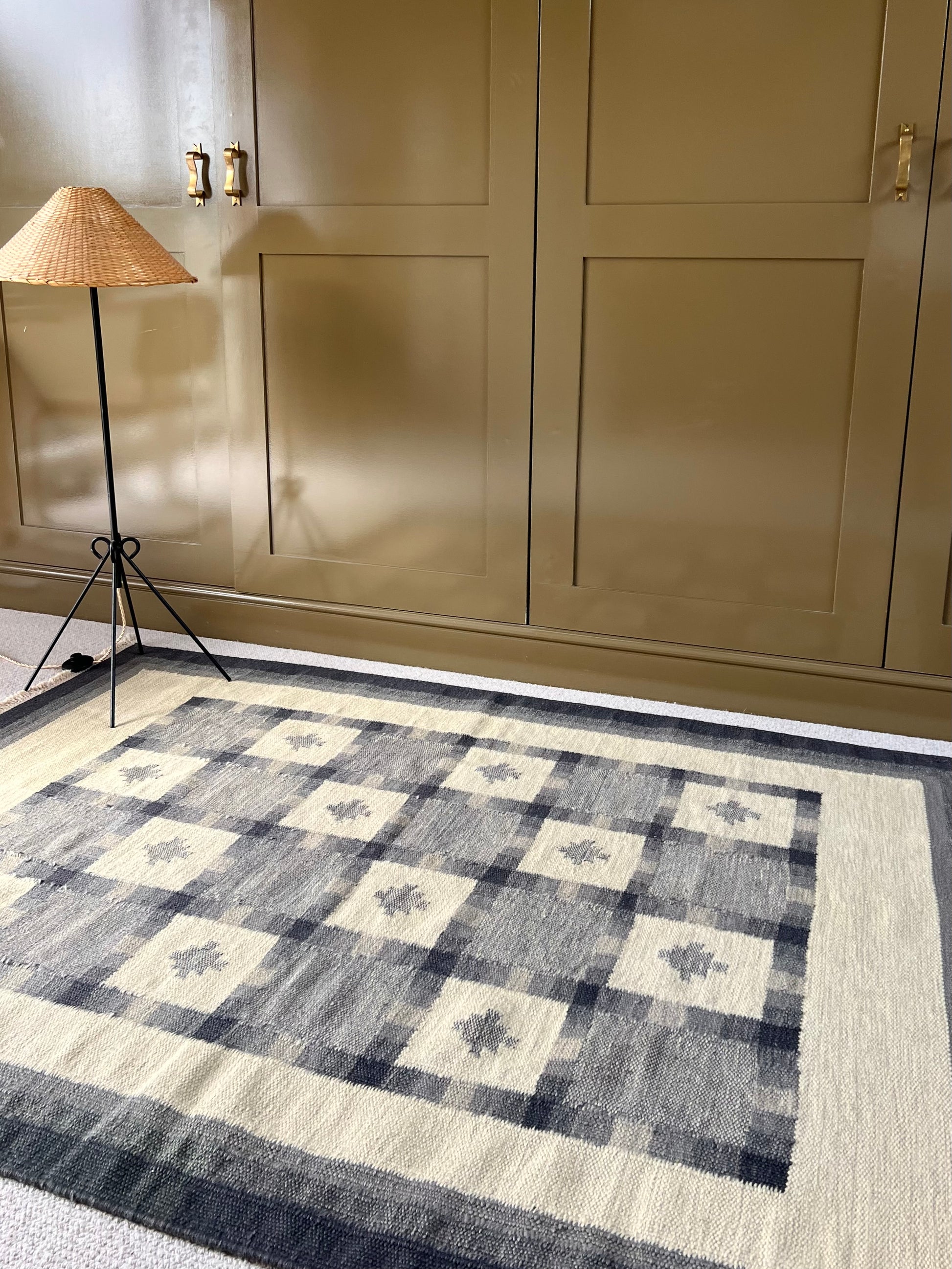 With its soft, muted tones and geometric checkerboard design, it strikes the perfect balance between minimalism and cozy charm. In immaculate condition, and Interestingly one side is more grey toned, and one more blue toned, so it is incredibly versatile.